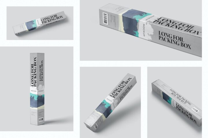 Mock, Ups, Long, Foil, Packing, Box, Paper, Aluminum, Packaging, Tube, Card, Package, Label, Branding,