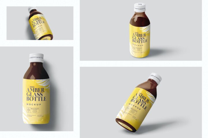 Make most effective and attractive presentation of your medicine bottle packaging and label design with these amber glass syrup bottle mockups. These mockups offer smart object option and layers for the process of customization. The customization process includes design insertion, color customization, light effects adjustment and background replacement.