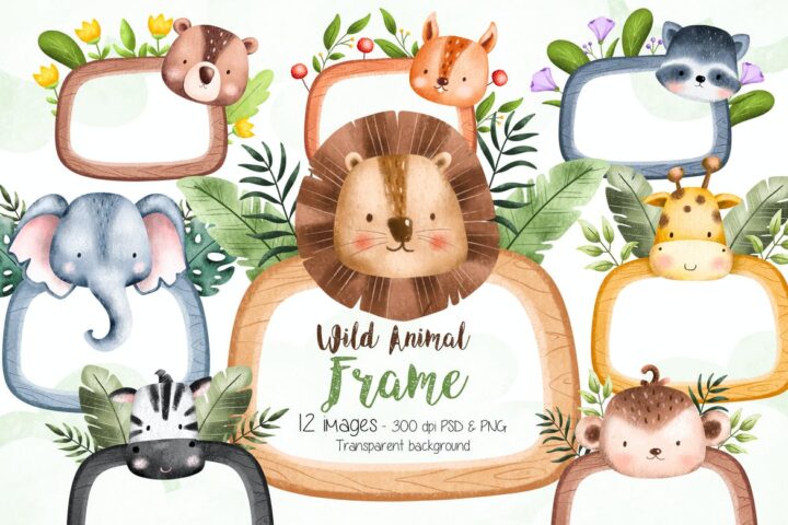 Animal, Frame, Border, Cute, Label, Character, Woodland, Wild,Jungle, Safari, Lion, Giraffe, Elephant, Monkey, Bear, gfx