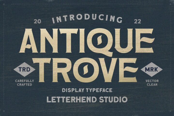 Antique Trove is a classic display font. This type of font perfectly made which is need a standout font, and the other various formal forms such as invitations, labels, logos, magazines, books, greeting / wedding cards, packaging, fashion, make up, stationery, novels, labels or any type of advertising purpose.