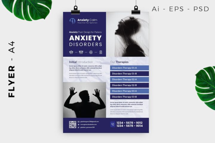 Anxiety / Psychology Solution Flyer Design. Fresh and elegant and modern design for a flyer. This template is completely editable to suit your brands colors and corporate fonts.