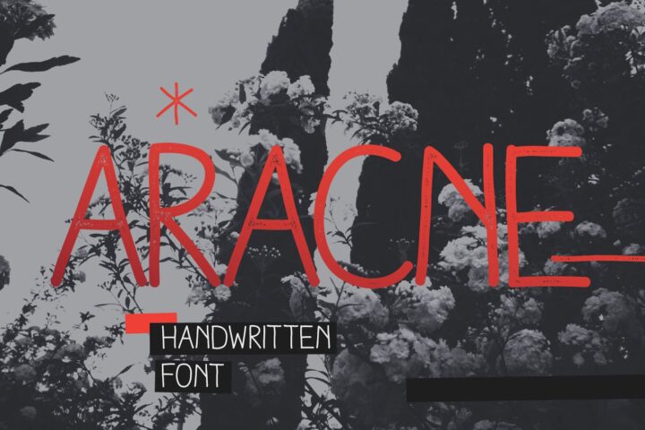 Aracne was created as an extended version of the font Aracne, a regular full of energy handwritten font, with light and regular styles, including italics. It provides a wide range of possibilities, including the Aracne Soft and Stamp, which offer softer and cleaner edges. Its glyph coverage supports languages such as English, Spanish, French, German, Polish, Czech, among many others. Its recommended usage is for display titles, and small ammount of text, because of its good legibility and quality of glyphs.