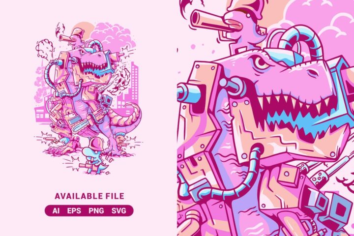 Illustration, Animal, Design, Graphic, Drawing, Tyrannosaurus, Jurassic, Prehistoric, Vector, Monster, Predator, Reptile, Lizard, Wildlife, Mecha,