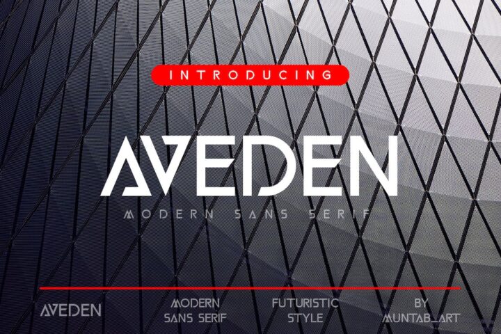 Aveden fonts includes uppercase letters, numerals, a large range of punctuation. sans serif font with modern style. Created for poster, web design, branding, illustrations, badges and some other works.
