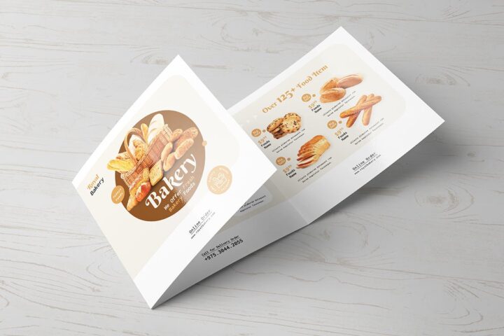 Brochure, Bakery, Promotional, Services, Baking, Store, Cake, Fold, Fresh, Information, Multipurpose, Trifold, Psd, Indesign, Square,