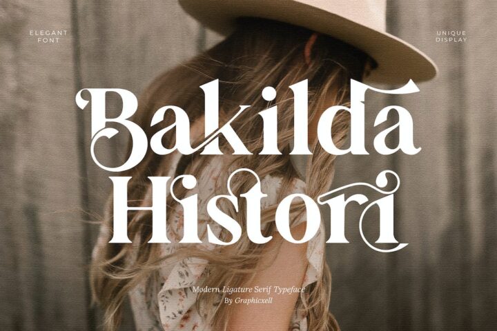 Bakilda Histori Serif Font inspired by the famous minimalist logo perfect for the purposes of designing templates, brochures, videos, advertising branding, logos, invitation, layout design, elegant crafting, beauty design and more.