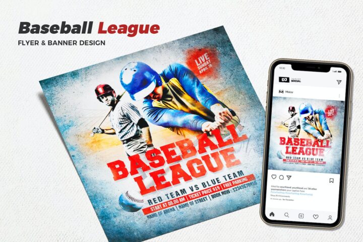 Baseball League Social Media Promotion Creative and modern Instagram template to make your Instagram feed better and stand out. This flyer template perfect for any personal or corporate use. You can easily edit this flyer template. You can change the image with the smart object. You can resize all objects without reducing the image quality.