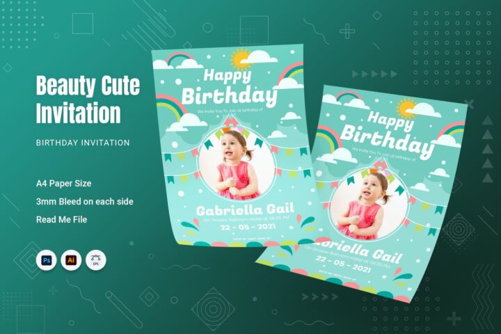Beauty Cute Birthday Invitation Birthday invitations that are modern and suitable for you or your company in providing luxury, can be used for individual or corporate needs and others. Easy to edit text & color you want !!!