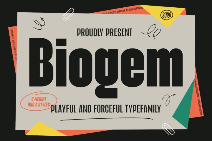 Surotype, Biogem, Headline, Display, Condensed, Poster, Playfull, Forceful,