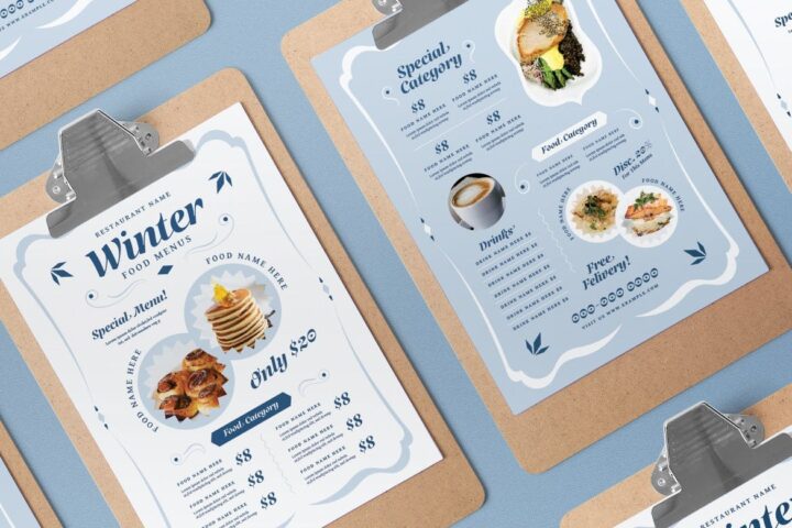 Food, Food menu, Menu, Menulist, Pricelist, Design, Template, Useful, Restaurant, Cafe, Vintae, Winter, Winter food menu, Snowy,