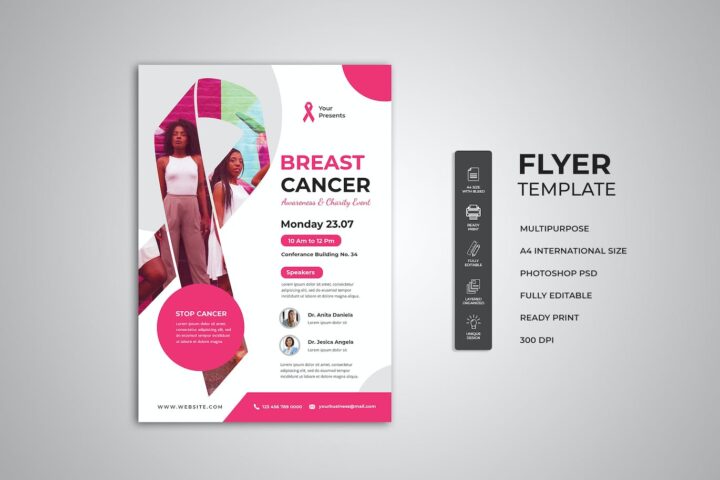 Special Breast Cancer Flyer Template. Fresh and elegant and modern design for a Breast Cancer Flyer. Perfect for Breast Cancer Flyer package promotions.