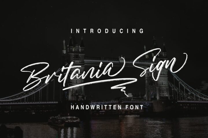 introduces the new Britania Sign Handwritten Font is a handwritten font with a distinctive and sharp brush texture. The Britania Sign is handwritten on paper with a rough brush type, resulting in a consistent texture. You can change the Britania Sign as you wish to create a unique style when several characters of the same letter meet, as Britania Sign has alternative lowercase letters with ending swash. The Britania Sign handwritten font can also be used for various projects such as stationery invitations, social media, logos, Books, branding, Fashion, cafe, traveling, aerial, photography, graphic design with the addition of a few swashes. and can be combined with various types of sans fonts to enhance the project you want to work on. Files