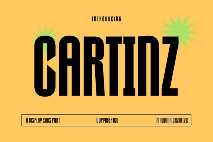 Cartinz is a modern sharp condensed sans display font. With bold consist stroke, fun character with a bit of ligatures and alternates. To give you an extra creative work. Cartinz font support multilingual more than 100+ language. This font is good for logo design, Social media, Movie Titles, Books Titles, a short text even a long text letter and good for your secondary text font with sans or serif. Make a stunning work with Cartinz font.