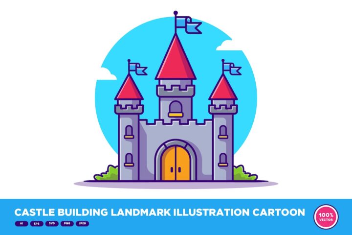 Castle, Palace, Landmark, Building, Kingdom, Citadel, Historical, Cartoon, Object, Vector, Icon, Illustration, Logo, Symbol, Design,