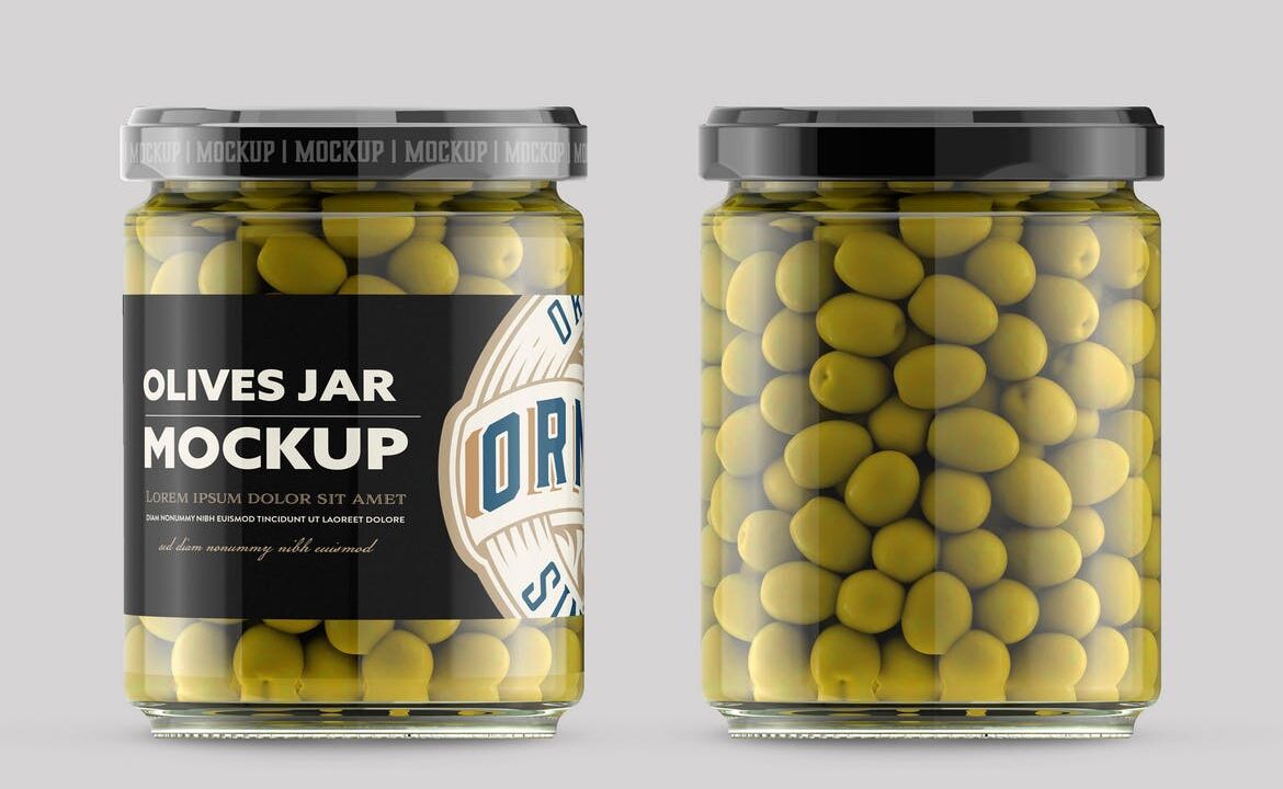 Clear Glass Jar with Olives Mockup