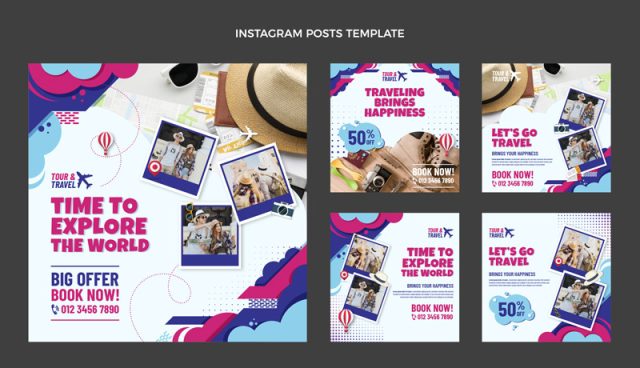Flat design of travel instagram posts
