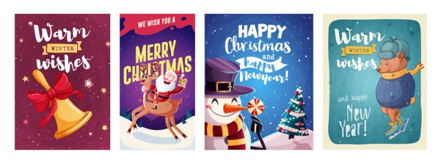 Set of merry christmas and happy new year