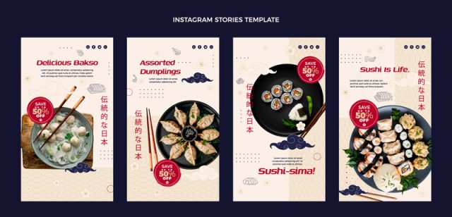 Flat design asian food instagram stories