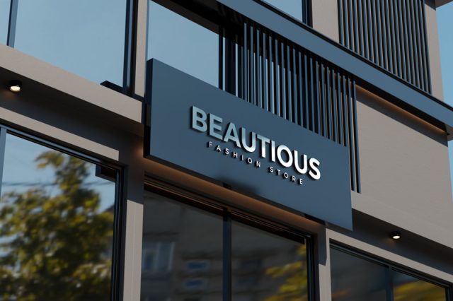 Logo mockup on black facade store sign