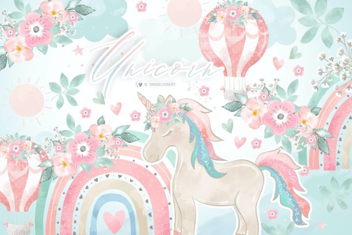 Unicorn floral rainbow design