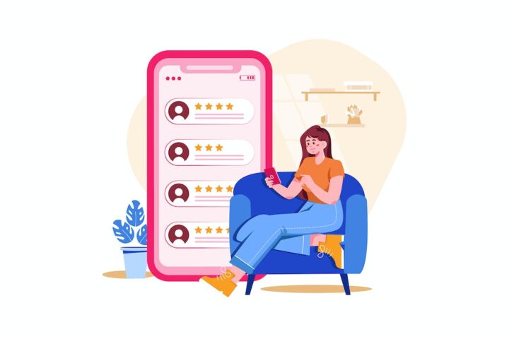 Customer Gives An Online Review On Mobile App
