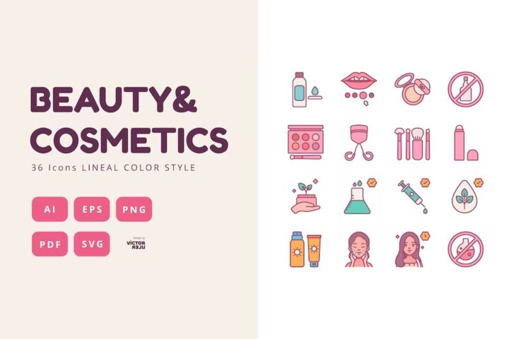 36 Icons Beauty&Cosmetics Lineal Color Style