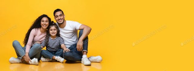 Banner For Advertisement With Happy Middle Eastern Family Of Three