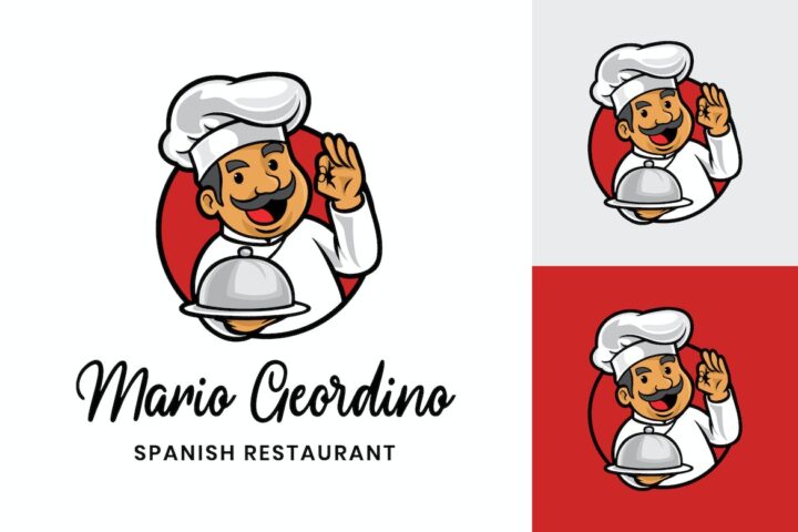 Logo, designed specifically for chef and restaurant related business. In our vision the chef is spanish or italian, but you can change the skin color yourself to make it suitable for your need. A chef is a trained professional cook and tradesman who is proficient in all aspects of food preparation, often focusing on a particular cuisine. Before you open the file, please install the font first from ‘Font Link.txt’