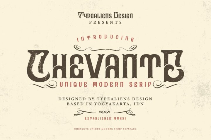 Font, Typeface, Typography, Serif, Vintage, Modern, Classic, Retro, Ornaments, Borders, Logotype, Chevante, Typealiens, Unique, Label,