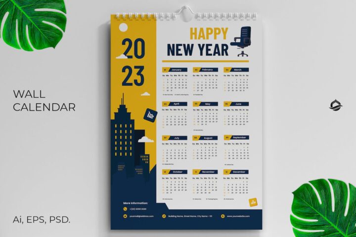 Wall Calendar 2023 Template **This template is completely editable to suit your colors and fonts. Wall Calendar 2023 Template with a modern creative look. Calendar designs are very easy to customize, so you can quickly tailor-make your Wall Calendar for any opportunity. Use this calendar template for your company or surprise your customers.