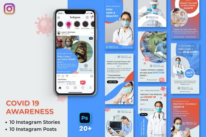 Corona, Covid 19, Instagram, Stories, Instagram story, Instragram post, Social media, Feeds, Post, Virus, Medical, Awareness, Banner, Poster, Mockup,