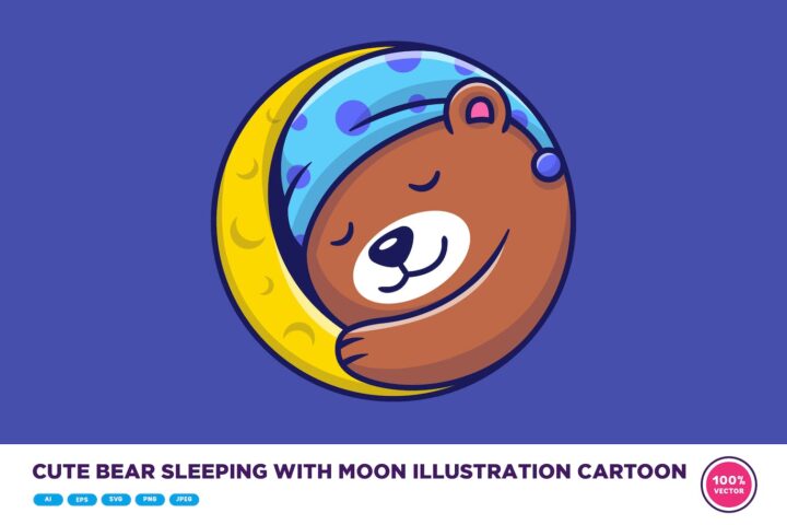 Cute Bear Sleeping With Moon Illustration Cartoon