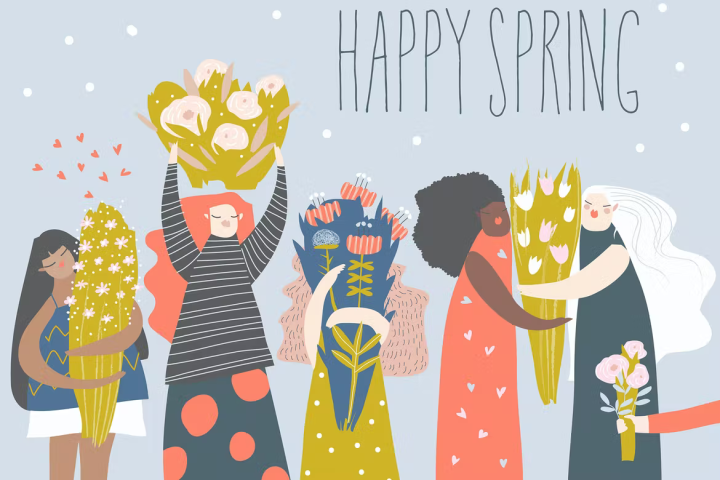Woman, Girl, Spring ,Background ,Bouquet ,Flower ,Celebration ,Day, Holiday ,March ,Hold, Female ,Vector, Card ,Love, gfx