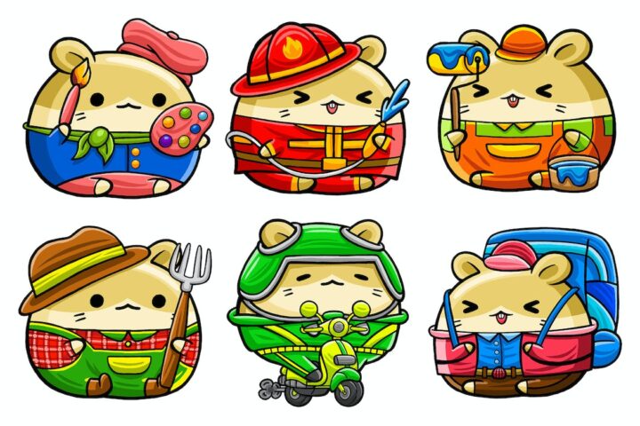 Cute, Hamster, Profession, Vector, Pack, Animal, Pet, Domestic, Mammal, Worker, Happy, Occupation, Character, Funny, Fluffy,