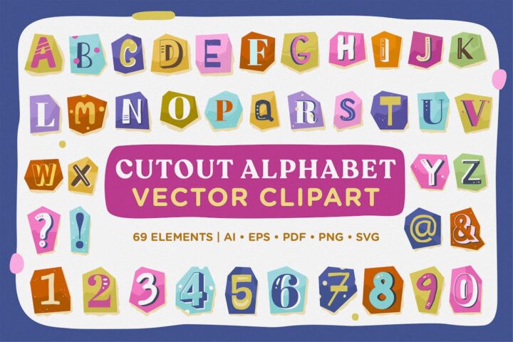 69 Cutout Alphabet Vector Clipart Pack in Vector AI, EPS, PDF, PNG & SVG Formats.