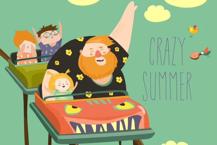 Rollercoaster, Father, Daughter, Girl, Themepark,Summer, Coaster, Happy, Screaming, Amusementpark, Fun, Adventure, Amusement, Attraction, Vacation, gfx