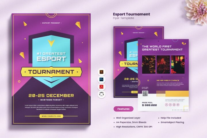 E-Sport Tournament Flyer Modern Style is corporate business brochure or flyer template will help you to promote your any project purpose with elegant, modern, simple, minimalist and professional design. With professional design you can use this template for any kind of businesses, company, corporate and any marketing promotion.