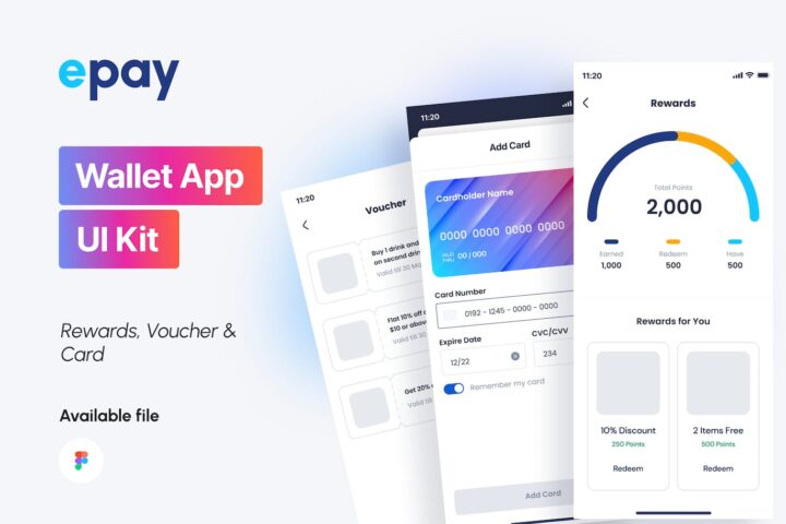 Ui, Kit, Mobile, App, Wallet, Management, Finance, Epay, Money, Expense, Rewards, Payment, Card, Voucher, Banking,