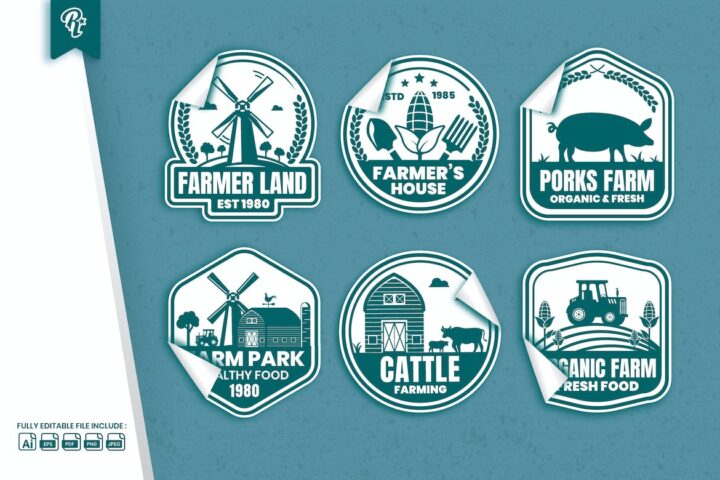 Farm, Farmer, Farming, Agriculture, Barn, Fields, Label, Sticker, Badge, Emblem, Organic, Natural, Agri business, Rasiorise, Wind mill,