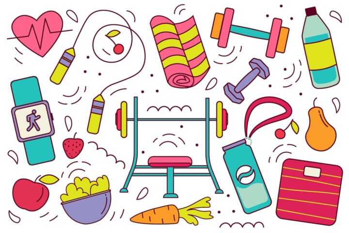 Fitness, Elements, Flat, Cartoon, Sticker, Object, Sign, Vector, Illustration, Set, Collection, Pack, Bundle, Icon, Design,