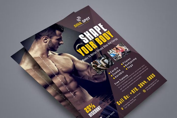Health & Fitness Flyer is a designed for Any types of companies. It is made by simple shapes Although looks very professional. Easy to modify, change colors, dimensions, get different combinations to suit the feel of your event.