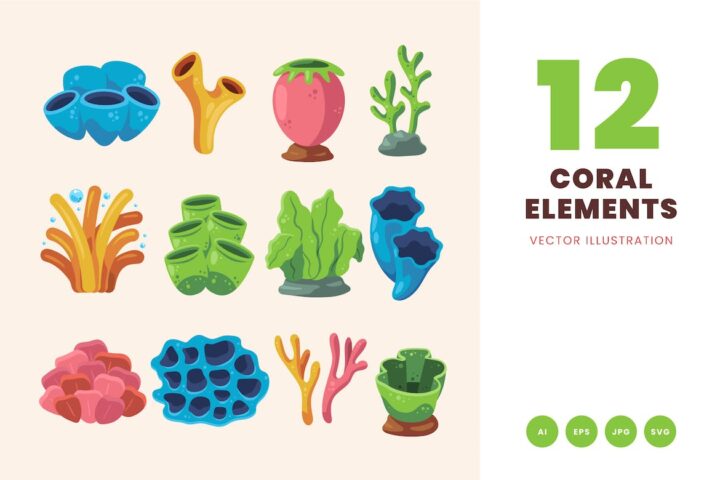 Flat Sea Coral Element Illustration . You can creatively edit and use this illustration set on merchandise, logo, sticker, patches, badge, and many more.