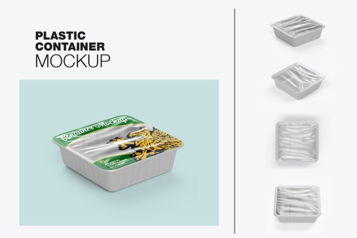 Plastic, Food, Container, Mockup, Display, Packaging, Transparent, Airtight, Reusable, Branding, Label, Graphic, Customizable, Catering, Event,