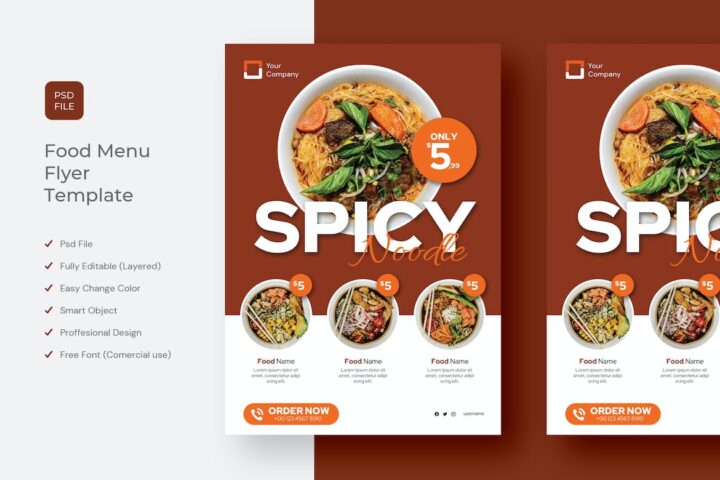 Food Restaurant Menu Flyer Template: Templates that are designed with a minimalist and modern concept can be used for your business promotion. You can do customization easily.
