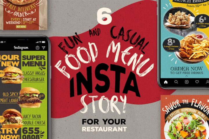 There are 6 different layouts that you can choose for your menu with different fonts and style for for each design. All files come in HD format – 1080×1920. The PSD files contain well-arranged layers that are very easy to edit, whether to change the color, put your pictures and change the text.