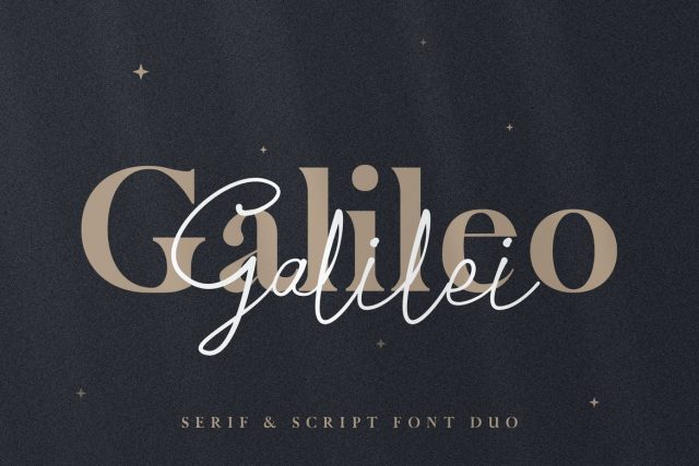Introducing Galileo Galilei – a modern pair of classic serif and handwritten script fonts.