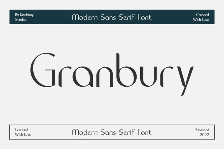 Granbury is a minimal and neat sans serif font. It can easily be matched to various projects, so add it to your most creative ideas and notice how it makes them stand out!