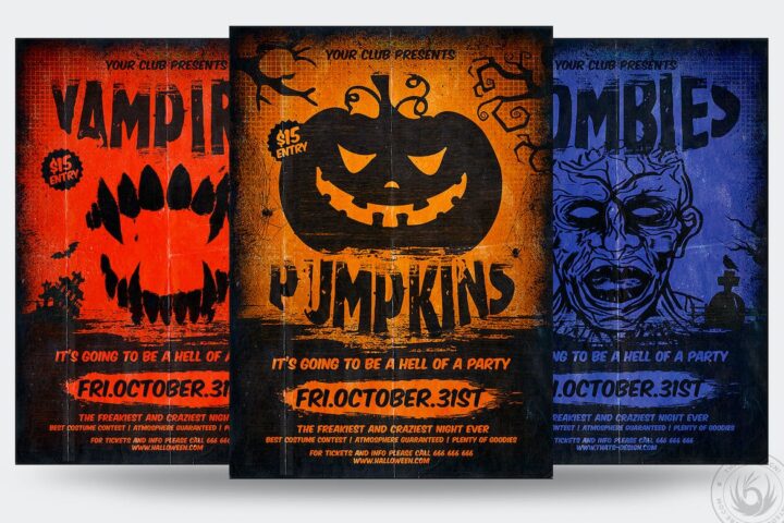 Party, Night, Club, Horror, Freak, Show, Pumpkins, Vampires, Zombies, Flyer, Poster, Template, Design, Scary,