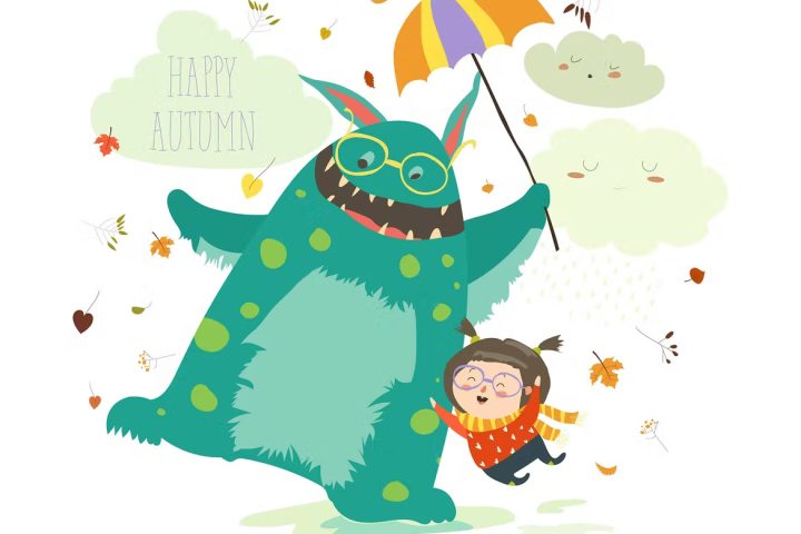 Vector, Autumn ,Fall, Monster, Umbrella, Girl, Friends, Friendship, Holiday, Eyeglasses, Fairytale, Halloween, Leaf, Leaves, Cute, gfx
