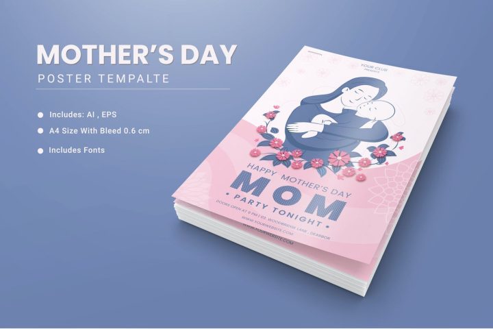 Celebration, Mother, Event, Flyer, Poster, Print, Flower, Pink, Roses, Watercolor, Heart, Mothers day, Mom, Family, Modern,